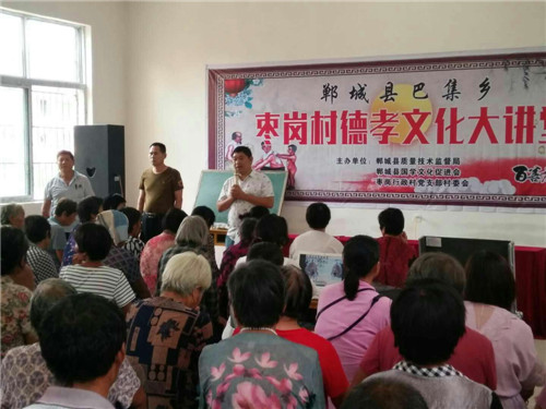 8月17日至19日,鄲城縣巴集鄉(xiāng)棗崗文化活動(dòng)中心舉行了為期三天的徳孝文化大講堂,本次活動(dòng)由縣質(zhì)監(jiān)局、縣國(guó)學(xué)會(huì)、棗崗行政村黨支部村委會(huì)主辦。旨在進(jìn)一步樹(shù)立社會(huì)新風(fēng),建立良好的家風(fēng)家規(guī),深入弘揚(yáng)和傳承中華徳孝傳統(tǒng)文化,積極培育和踐行社會(huì)主義核心價(jià)值觀,提高公民素質(zhì)和社會(huì)文明程度,形成“以德修身、以身孝親”的良好風(fēng)尚。