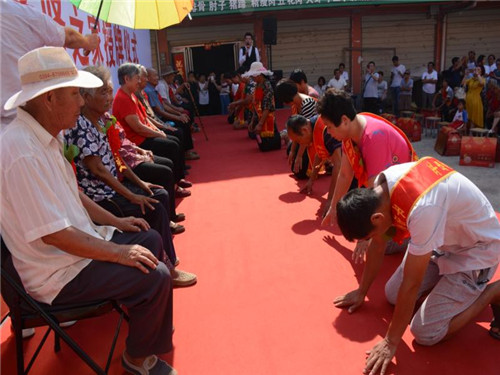 鄉(xiāng)長吳國鋒發(fā)表了熱情洋溢的致辭。他首先代表平店鄉(xiāng)黨委、政府、人大向受到表彰的先進(jìn)模范和先進(jìn)家庭表示熱烈的祝賀并致以崇高的敬意。并詳細(xì)闡述了開展“孝善敬老讓愛回家、孝賢之星表彰授牌暨解決獨(dú)居老年人問題、助力脫貧攻堅(jiān)的重大意義,他希望受到表彰的先進(jìn)代表和家庭要珍惜榮譽(yù)、再接再厲,繼續(xù)弘揚(yáng)尊老、敬老、養(yǎng)老、愛老的傳統(tǒng)美德,推動全鄉(xiāng)“孝善敬老”文化不斷邁向新臺階。活動現(xiàn)場宣讀了《平店鄉(xiāng)人民政府敦促將被贍養(yǎng)人接入安全住房共同生活的通告》;與會領(lǐng)導(dǎo)為孝賢之家頒獎(jiǎng)授牌;28個(gè)“孝子孝媳”在臺上統(tǒng)一施行叩拜大禮;活動結(jié)束后,鄉(xiāng)政府指派3名班子領(lǐng)導(dǎo)和10多名工作人員,分別乘坐6臺輛,由嗩吶隊(duì)開路,風(fēng)風(fēng)光光把28個(gè)老人送回了家。一路引來不少群眾駐足注目觀看,廣大群眾對此嘖嘖稱贊、拍手稱快。