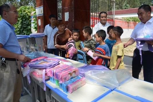 “我們這個小學(xué)是建校幾十年的老學(xué)校,很多桌凳都很破舊了。這不,剛剛開學(xué),村里幫 扶企業(yè)就給俺送來了課桌凳、書包文具,電腦桌、檔案柜,現(xiàn)在國家扶貧政策就是好。你 看,這些學(xué)生都很高興,我們學(xué)生雖然不多一定要用心教學(xué),以實際行動報答社會的關(guān)愛 ......”校長任海峰感激之情溢于言表。