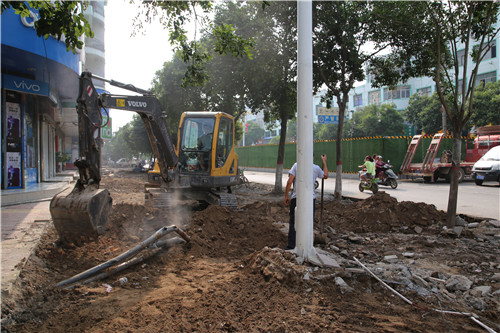 施工現(xiàn)場(chǎng),工人們正在鋪設(shè)路邊石,雨水管道、污水管道修建均已完工,預(yù)制灌漿水泥、紅綠燈改造拆卸正在進(jìn)行當(dāng)中,路邊人行道上,挖掘機(jī)在平整路基,工程西段正在翻新路面……施工方負(fù)責(zé)人告訴記者:“我們會(huì)在施工的過程中保證沿途圍檔干凈整潔,整齊有序,并張貼醒目警示標(biāo)語,每天定時(shí)灑水壓塵,盡量不影響市民出行?!?/p>