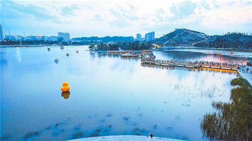 時下,漫步在鹿邑縣上清湖公園,亭臺樓榭處處皆景;朝暉、晚霞,倒映水中;夜幕下的景色更是美輪美奐。據(jù)了解,上清湖水域面積達到16.7公頃,建有親水平臺、游船碼頭、兒童沙灘、湖心島、音樂噴泉、景觀橋、觀水亭、假山等景點。踏著青石臺階或沿著假山坡道來到山頂或登臨十多米高的觀水亭,可以俯瞰整個湖區(qū),繞湖車道、步行園道、健康游道像三條紅飄帶圍繞湖區(qū),東北角的正清林里修竹清風(fēng),魅影婆娑,加之周邊林立高樓倒映水中,湖光山色美不勝收,令人流連忘返。圖①②③④為上清湖風(fēng)景。記者 李瑞才 通訊員 胡洪濤 文/圖