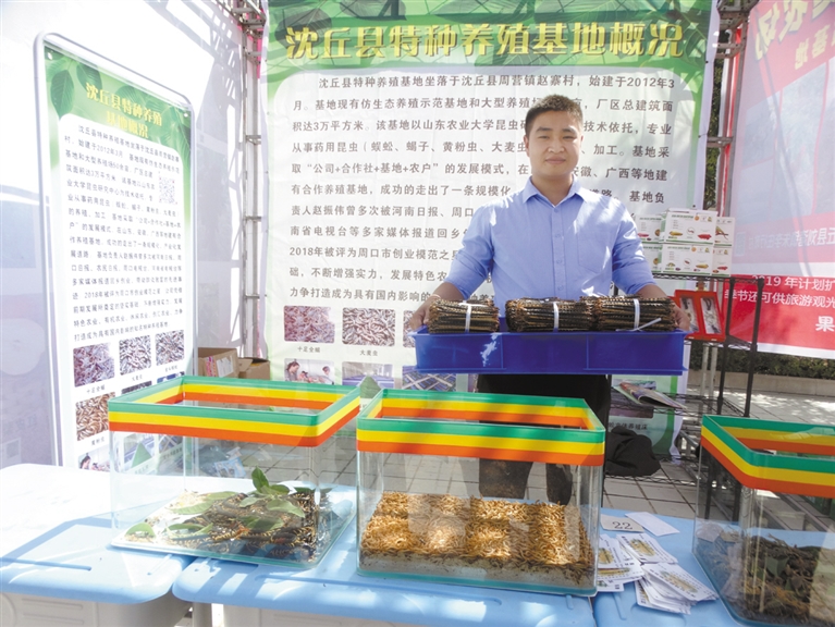 9月22日,沈丘縣舉辦第一個(gè)中國(guó)農(nóng)民豐收節(jié)慶祝活動(dòng),來(lái)自全縣22個(gè)鄉(xiāng)鎮(zhèn)(辦事處)的35家農(nóng)民種植、養(yǎng)殖合作社和家庭農(nóng)場(chǎng),展示了槐山藥、黃金梨、冬棗、木瓜、“袖珍”黃瓜、活體蜈蚣、蝎子等120余個(gè)品種。