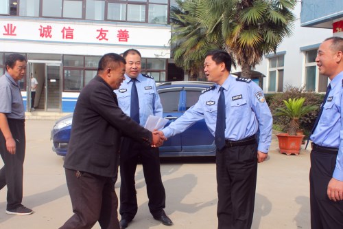 10月9日上午,李埠口鄉(xiāng)孫莊村數(shù)十名群眾代表,來到周口市公安局港區(qū)分局,將寫有“打黑除害促和諧,警民共建保平安”的錦旗和感謝信送到何學(xué)民政委的手中,村民代表對分局鐵腕鏟除該村“村霸”維護孫莊村和諧穩(wěn)定表示由衷的感謝。