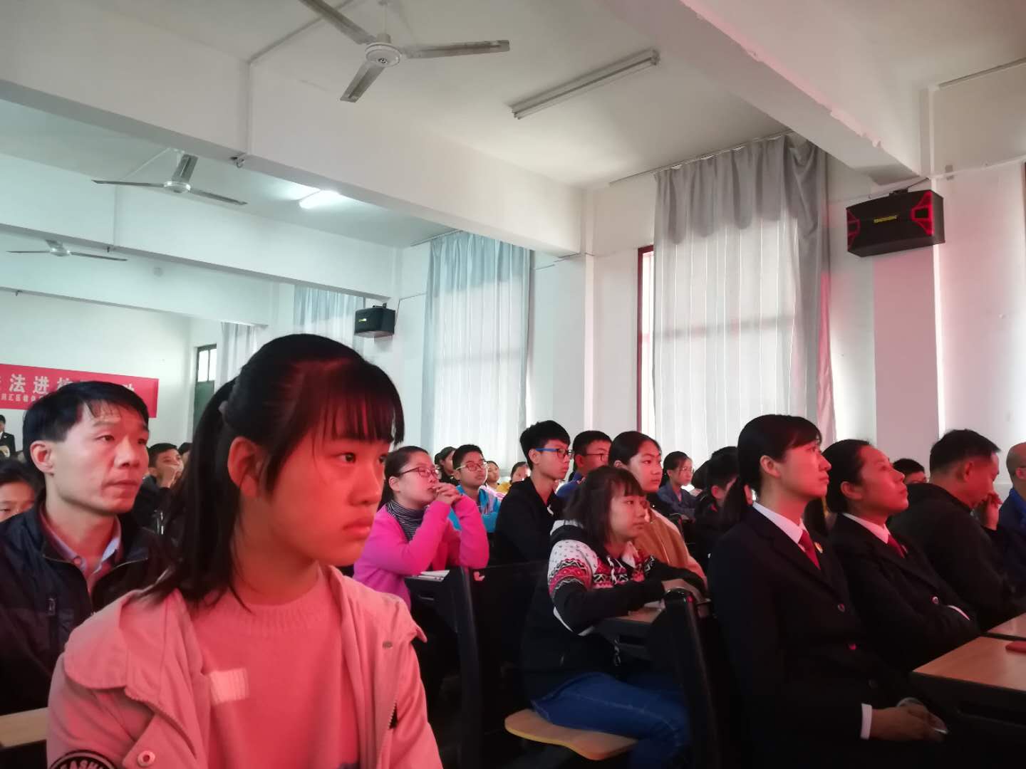 課堂上,檢察官通過播放宣傳片、做報告等形式,深入淺出地分析了校園欺凌的表現(xiàn)形式、危害以及如何面對校園欺凌等知識,讓同學(xué)們明白校園欺凌行為的惡劣后果,提醒同學(xué)們知法、懂法、守法,用正確的方法保護(hù)自己。