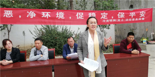 10月21日上午,商水縣法院駐城關(guān)鄉(xiāng)柴堂村工作隊(duì)、縣司法局和河南明辯律師事務(wù)所到基層集中開展掃黑除惡法律宣傳和咨詢活動(dòng)。