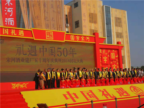 金秋十月,五谷豐登,神州大地,秋釀飄香。在這美好的季節(jié),地處老子故里的河南宋河酒業(yè)迎來了她五十歲華誕。10月30日,“禮遇中國五十年——宋河酒業(yè)建廠五十周年慶典暨2018封壇大典”在鹿邑宋河酒業(yè)生產(chǎn)園區(qū)隆重開幕,省市縣領(lǐng)導(dǎo)、行業(yè)專家與來自全國各地的經(jīng)銷商、供應(yīng)商以及全國知名品牌的白酒企業(yè)近1500人共同見證這一時(shí)刻,見證在豫酒轉(zhuǎn)型升級政策推動下、宋河酒業(yè)的振興之路。