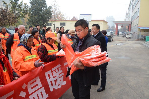 近日寒流來襲,氣溫驟降,連續(xù)的低溫降雨天氣讓人感受到了冬天的寒冷,為了確保縣城區(qū)環(huán)境衛(wèi)生干凈整潔,廣大環(huán)衛(wèi)工人們始終堅(jiān)持冒嚴(yán)寒每天起早貪黑打掃城區(qū)衛(wèi)生,默默無聞堅(jiān)守在工作一線。12月3日,西華縣媧城商會(huì)會(huì)長(zhǎng)黃鳳芝攜手愛心企業(yè)山西汾酒集團(tuán)代理商宋二領(lǐng)來到城管局向環(huán)衛(wèi)工人捐贈(zèng)一批環(huán)衛(wèi)保潔防寒服,在寒冷冬天為堅(jiān)守縣城區(qū)保潔一線的每位環(huán)衛(wèi)工人送去溫暖。