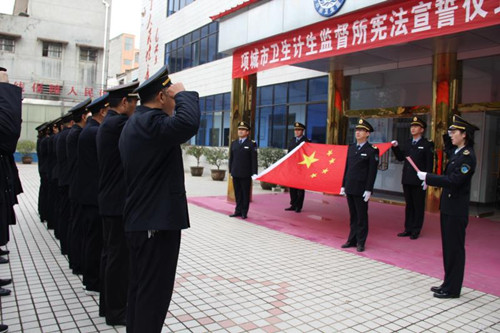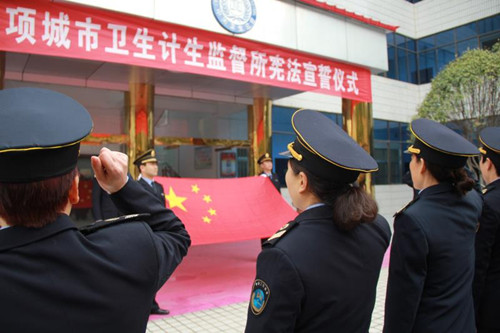 12月4日在我國第五個(gè)國家憲法日來臨之際,項(xiàng)城市衛(wèi)生計(jì)生監(jiān)督所舉行憲法宣誓儀式,旨在引導(dǎo)全體衛(wèi)生計(jì)生監(jiān)督人員牢固樹立憲法至上意識,增強(qiáng)憲法觀念,自覺維護(hù)憲法尊嚴(yán)。