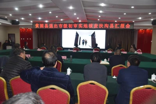 12月3日,貧困縣退出市級(jí)初審實(shí)地核查扶溝縣匯報(bào)會(huì)召開。市級(jí)初審第一實(shí)地核查組組長(zhǎng)劉哲,副組長(zhǎng)毛立營(yíng)、王啟輝、李濤、齊長(zhǎng)軍、陳強(qiáng),監(jiān)督員周萌,聯(lián)絡(luò)員豆筱倩,扶溝縣領(lǐng)導(dǎo)盧偉、張峰、段然、趙紅亮等出席會(huì)議??h委副書記、政法委書記張峰主持會(huì)議。