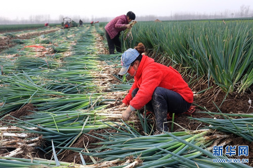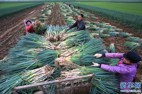 近年來,淮陽縣齊老鄉(xiāng)袁樓行政村大力發(fā)展特色種植,以“合作社+農(nóng)戶”的形式種植大蔥4000余畝,每畝增收14000余元,帶動村里貧困人口35戶124人土地入股和就業(yè),其中已有25戶脫貧。通過發(fā)展種植大蔥,該村從以前人均不足2000元的貧困村變成如今人均達(dá)到1萬多元的小康村。新華網(wǎng)發(fā)(楊正華 攝)