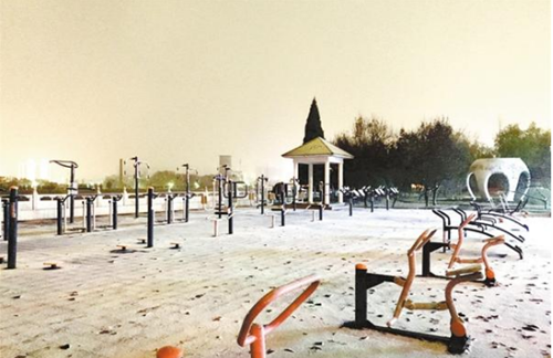2018年冬天的第一場大雪,把周口市中心城區(qū)沙潁河風景區(qū)裝扮得清新雅致,別有一番風味?;ú荨⒕G植、雕塑、亭臺、環(huán)廊、步道乃至健身器材,在雪的映襯下,都顯得通透而有靈性,讓人欣喜非常。
