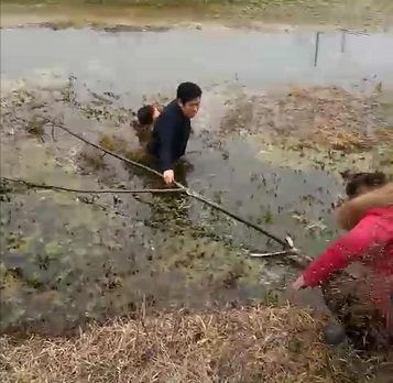 當日上午12時許,在走村入戶返回住處途中,突然聽到不遠處的黑河邊有女子大聲在喊:“快點來河里救人啊!有人跳進河里啦!”正好路過此處的倪永勝和王懷銀聽到喊叫聲后,毫不猶豫地直奔出事地點。50多歲的王懷銀來不及脫下衣服和掏出兜里的手機,一下子跳進了冰冷的河水中,倪永勝迅速組織村里趕來的群眾進行協助施救。此時,只見王懷銀全身衣服都濕透,在冰冷的河水中,王懷銀一手拄著一根樹枝防止下滑,一手使勁拉著跳河女子的手,在倪永勝和村民們的幫助下,將輕生女子成功救出。后經醫(yī)生檢查,由于施救及時,該女子并無大礙。