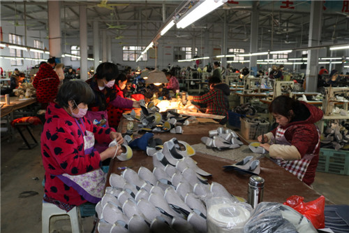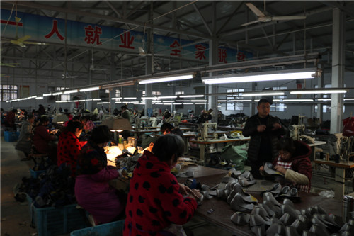 “在這里每個(gè)月可以掙3000多元,雖不如沿海城市掙的多,但從家里到廠里騎車(chē)幾分鐘就到,不影響做飯、照顧家。”秦梅英是鹿邑縣楊湖口鎮(zhèn)超琪鞋業(yè)扶貧車(chē)間對(duì)口幫扶貧困戶,因兩個(gè)孩子小再加上丈夫兩年前得抑郁癥需要照顧,所以不能外出務(wù)工,因此格外珍惜家門(mén)口這份工作。