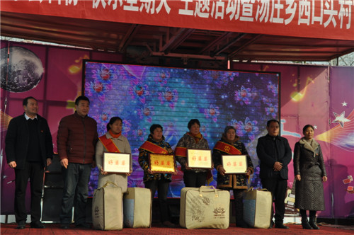 當(dāng)日,來自縣中醫(yī)院、縣衛(wèi)校附屬醫(yī)院的醫(yī)生在現(xiàn)場開展義診活動,縣文聯(lián)開展了春聯(lián)義寫活動,縣科協(xié)、移動公司等單位開展了科技文化宣傳活動。會議對湯莊鄉(xiāng)西口村評選出的“脫貧光榮戶、好婆婆、好媳婦、好鄉(xiāng)賢”等進(jìn)行表彰,縣委宣傳部副部長李全力、縣科協(xié)主席陳玲、湯莊鄉(xiāng)鄉(xiāng)長胡金旗等為獲獎人員頒獎。來自縣文化部門的文藝志愿者還為村民表演了精彩的文藝節(jié)目。