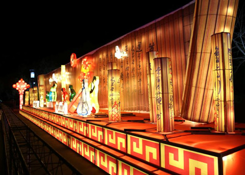 主題燈會(huì)老子布道、孔子問禮、武則天祭祖等造型與老子故里、人文鹿邑相得益彰,卡通肥豬為游客獻(xiàn)上一場(chǎng)憨厚的可愛形象,太極殿前日月潭內(nèi)青煙渺渺,在燈光的變化下讓人仿佛步入仙境,各個(gè)角落的樹木花草彩光熠熠,整個(gè)太清宮內(nèi)是光的海洋……