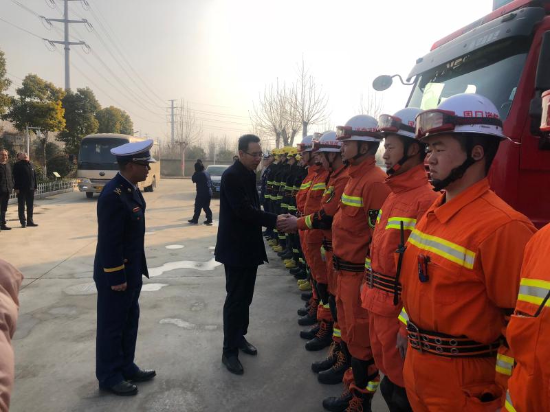 在開發(fā)區(qū)消防大隊(duì),王文峰與每一位消防隊(duì)員握手,詳細(xì)詢問他們的工作、生活、學(xué)習(xí)情況。王文峰指出,2018年,開發(fā)區(qū)消防大隊(duì)牢記“聽黨指揮,能打勝仗,作風(fēng)優(yōu)良”,努力訓(xùn)練,敢于戰(zhàn)斗,面對一系列急難險(xiǎn)重任務(wù)能夠拉得出、打得贏,為保障人民群眾生命財(cái)產(chǎn)安全作出了重要貢獻(xiàn)。新的一年,全市消防救援隊(duì)伍要繼續(xù)發(fā)揚(yáng)特別能吃苦、特別能戰(zhàn)斗的優(yōu)良傳統(tǒng),加強(qiáng)應(yīng)急救援綜合能力建設(shè),真正發(fā)揮好應(yīng)急救援主力軍和國家隊(duì)的職能作用。