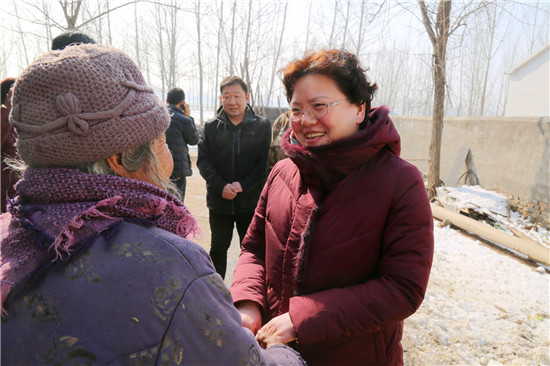 2018年5月11日,張穎波在看望大新鎮(zhèn)陳樓村的困難群眾吳鳳蓮時,曾對她說過一句話,“等你新房蓋好,我再來看你?!保罚稓q的吳鳳蓮把這句話牢牢地記在了心里。一見張穎波的面,拉著手留著淚連聲說:“俺家房早就蓋好了,就一直盼著恁來。我知道恁忙,可就想讓恁看看俺的房……”老人和一位患病的兒子一起生活,去年5月份張穎波來時,她家正因“危房清零”活動而扒掉舊房蓋新房。張穎波當時還特意滿足了老人的一個愿望,安排村干部為她家房內專門壘個隔斷?!拔遥罚岸嗔?,從來沒住過這么好的房、從來沒過過這么好的日子!”新建的三間磚瓦房、一間配套齊全的廚房和壘好的院墻讓老人感慨不已,發(fā)自肺腑地說著黨和政府的好?!袄先思遥医裉炀褪窍肟纯捶孔痈脑斓脑鯓?,也給你拜個早年?!睆埛f波拉著吳鳳蓮老人的手說:“房子蓋好了,也算了了你的一個心愿,有黨和政府的幫助,日子會越來越好。你要照顧好自己和孩子,有啥困難就找村里干部?!?/p>