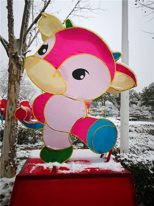 昨日,記者在元宵燈會周口公園展區(qū)口看到,花燈布置在緊張有序進行。周口公園南門大型燈組的生肖豬造型喜慶又可愛。雖然還沒有組裝完畢,仍吸引了許多路過的市民拍照。
