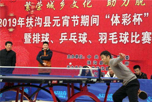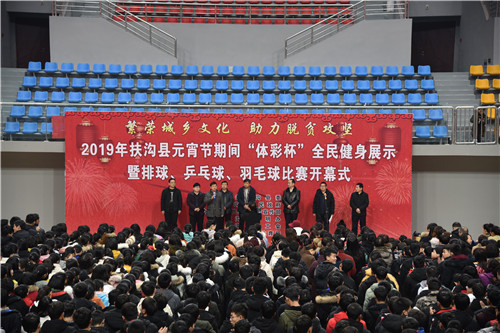 2月17日上午,元宵佳節(jié)即將來臨之際,在全縣脫貧攻堅沖刺的關鍵時期,扶溝縣2019年元宵節(jié)“體彩杯”全民健身展示暨排球、乒乓球、羽毛球比賽活動在縣體育館隆重開幕?;顒又荚谪S富全縣廣大人民群眾的文化生活,助力脫貧攻堅,為實現(xiàn)“五個扶溝”增光添彩。縣委常委、宣傳部長馬昭才,副縣長吳興華等出席開幕式??h委宣傳部副部長張根主持開幕式。