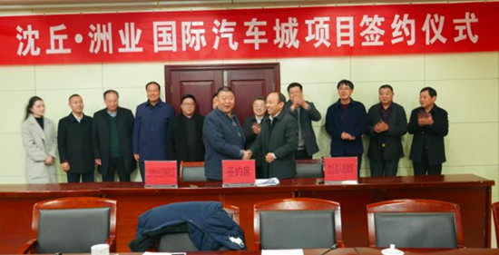 2月26日,沈丘洲業(yè)國際汽車城項目簽約儀式在錦華大酒店舉行。沈丘縣委書記皇甫立新,縣長劉國慶,縣委常委、常務副縣長郝四春,副縣長呂孝坤,副處級干部張曉,上海洲業(yè)企業(yè)管理有限公司董事長李海波,總裁李榮輝等出席簽約儀式,縣直相關職能部門負責人參加了簽約儀式。