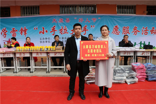 精彩的武術(shù),漂亮的書包、校服……3月3日,太康縣王集鄉(xiāng)新店鋪小學(xué)106名學(xué)生每人收到了一份“大禮包”。當(dāng)日,太康縣委宣傳部和縣文明辦在新店鋪村舉辦太康縣“好人節(jié)”暨學(xué)雷鋒“小手拉大手”志愿服務(wù)活動(dòng),30多名志愿者為學(xué)生們發(fā)放了書包、文具和校服等,并深入貧困戶家中幫助打掃庭院衛(wèi)生,受到村民的一致好評(píng)。