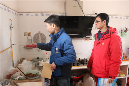當(dāng)天一大早,西氣東輸淮陽(yáng)站全體黨員和線路管理人員就扛上黨旗出發(fā)了,在與博能燃?xì)夤ぷ魅藛T會(huì)合后,先后來(lái)到西氣東輸管道沿線的王莊村、杜莊村等村莊,在當(dāng)?shù)卮逦姆e極組織下,集中向村民講解了燃?xì)夤艿辣Wo(hù)知識(shí)以及戶內(nèi)安全用氣常識(shí)。然后,站場(chǎng)人員和博能燃?xì)馊藛T兩人一組,攜帶可燃?xì)怏w檢測(cè)儀、宣傳品等挨家挨戶進(jìn)行戶內(nèi)燃?xì)獍踩珯z查工作。通過(guò)宣傳,村莊農(nóng)戶了解了西氣東輸管道的走向位置,知道了家里清潔、方便、便宜的天然氣來(lái)自西氣東輸管道,紛紛表示要一起共同保護(hù)好管道安全。