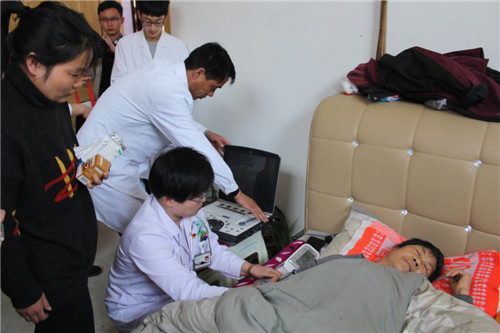 在王崗家中,專家們先后為王崗父母、妻子進(jìn)行了彩超、心電圖、血壓、血糖等項(xiàng)目檢查,并根據(jù)檢測數(shù)據(jù),現(xiàn)場分析、研究病情,做了詳細(xì)醫(yī)囑,還為他們送了包含各種項(xiàng)目的健康體檢表。