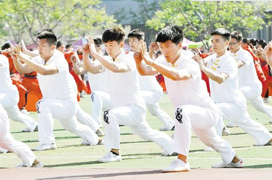 4月18日上午,周口師范學(xué)院第十五屆田徑運(yùn)動會開幕,來自該校各個學(xué)院的數(shù)千名學(xué)子投入運(yùn)動會健身活動中。700多名大學(xué)生在運(yùn)動會上集體表演了心意六合拳,受到觀眾熱捧。記者 梁照曾 攝