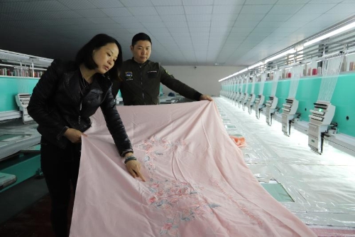 同時,城郊鄉(xiāng)發(fā)揮基層黨員干部和在外創(chuàng)業(yè)成功人士的廣泛人脈資源和經(jīng)濟(jì)優(yōu)勢,引導(dǎo)社會投資發(fā)展產(chǎn)業(yè)助力脫貧攻堅(jiān)。谷集行政村美紡科技有限公司就是典型個例。石永紅、石永華、石磊姐弟3人來自江蘇南通,他們盯上了城郊鄉(xiāng)的富余勞動力,投資800萬元建設(shè)了近2000平方米的紡繡車間,20臺國內(nèi)先進(jìn)設(shè)備可以利用全電腦操作繡出12種顏色的繡品。車間固定用工34人,其中建檔立卡貧困戶2人。只需要看著電腦控制臺、換布貼布、穿針引線,每人每天工資便可達(dá)到150元。