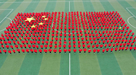 5月11日,扶溝縣中小學(xué)校足球聯(lián)賽暨中學(xué)生田徑運(yùn)動(dòng)會(huì)在縣秋實(shí)中學(xué)開(kāi)幕。開(kāi)幕式上,近4000名師生氣勢(shì)恢宏的大型團(tuán)體操表演,展示了激情飛揚(yáng)、活力四射的新時(shí)代精神風(fēng)貌。圖為縣回族小學(xué)表演的《同在陽(yáng)光下》團(tuán)體操。
