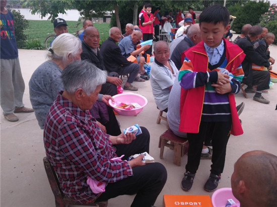 當(dāng)天上午,周口助夢公益團(tuán)20余名志愿者來到西華縣大王莊鄉(xiāng)中心敬老院,為37名老人帶來了自發(fā)捐款購買的鞋子、毛巾、襪子、香皂、臉盆、香蕉、西瓜等價(jià)值近2000元的愛心物資。