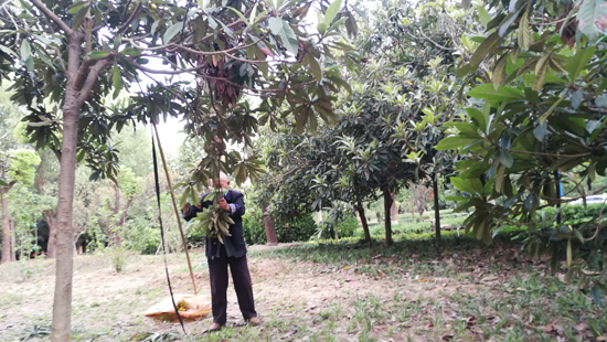 5月20日早上,在周口中心城區(qū)文昌大道與府苑街交叉口西側(cè)的街頭小游園內(nèi),一位老人正在采摘枇杷樹(shù)上還未完全成熟的枇杷果。記者看到,老人已采摘了一些枇杷果,地上落了不少樹(shù)葉。