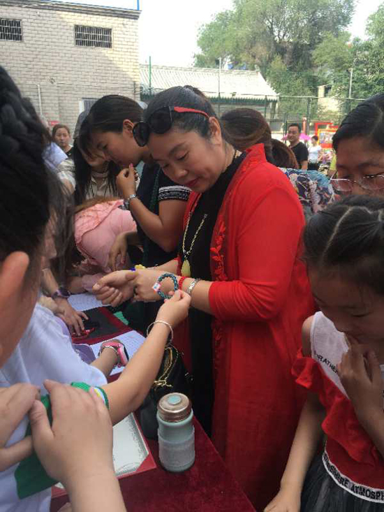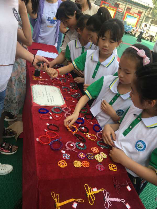 5月25日上午,沈丘縣中國結(jié)第七代傳承人李?;ㄗ哌M槐店鎮(zhèn)回民小學,和學?!爸袊Y(jié)”手工編織興趣班的20名學生舉行“愛心義賣,情暖校園”主題活動。不到半小時,100多件作品被搶購一空還預(yù)定了很多。據(jù)悉,這次義賣共得到1200余元,將全部捐給“槐店鎮(zhèn)中心學校教育基金”,用來資助該鎮(zhèn)經(jīng)濟困難師生、獎勵優(yōu)秀教師和學生、資助教育教研等重大活動項目。