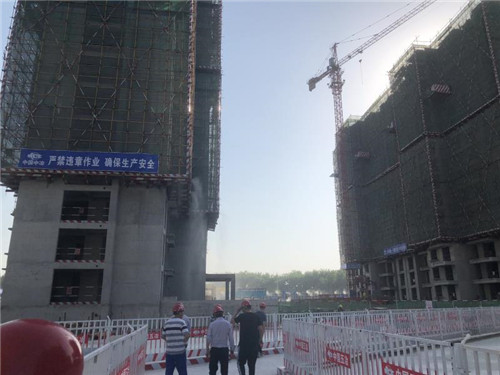 當(dāng)日下午,記者在金海嘉苑3標(biāo)段施工現(xiàn)場看到,高聳入云的塔吊有條不紊地作業(yè),施工車輛不時(shí)進(jìn)出,施工人員揮汗如雨緊張施工,一派忙碌的施工景象。工地環(huán)保措施也相當(dāng)?shù)轿?,樓層噴淋激起水霧彩虹,圍擋及通道噴淋霧狀灑水,車輛進(jìn)出必須清洗。在項(xiàng)目入口施工顯示牌上,噪音、揚(yáng)塵等指標(biāo)均嚴(yán)格控制在標(biāo)準(zhǔn)區(qū)間內(nèi)。