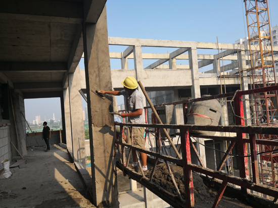 當(dāng)日上午,記者在施工現(xiàn)場看到,雖然天氣炎熱,但是每項工程都進展有序,部分已經(jīng)封頂?shù)臉欠空谶M行后續(xù)施工,未封頂?shù)臉欠恳舱诰o張施工中,整個施工現(xiàn)場電鉆聲、切割聲此起彼伏,一派熱烈的施工景象。