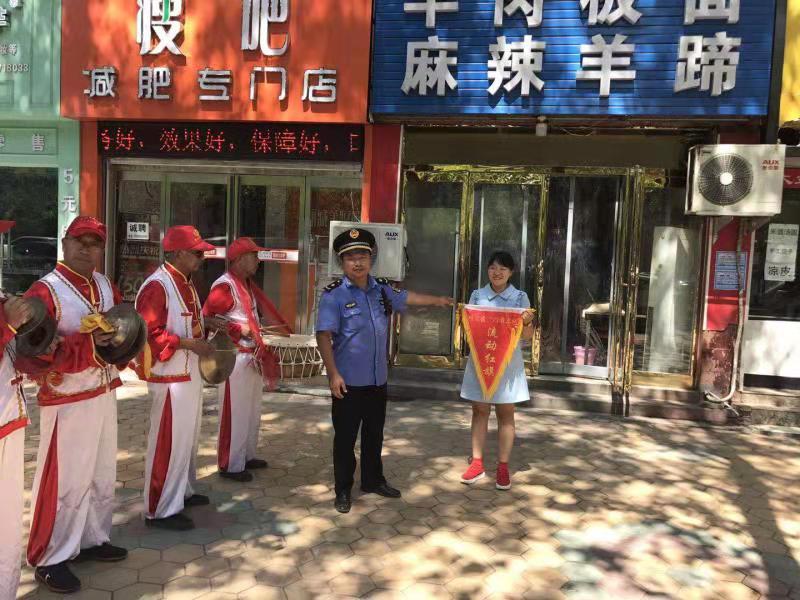 為鞏固創(chuàng)衛(wèi)成果,提高城市精細化管理水平,川匯區(qū)持續(xù)開展“紅黑旗”評選活動。7月22日,在陣陣鑼鼓聲中,該區(qū)城管人員又為6家紅旗商戶、6家黑旗商戶分別懸掛紅黑旗。