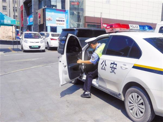 七一中路,一名交警準備去往下一個執(zhí)勤點。
