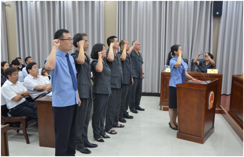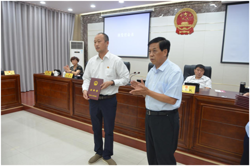 會(huì)議組織新任命的國家機(jī)關(guān)工作人員向憲法宣誓,李國際為新任命的國家機(jī)關(guān)工作人員頒發(fā)了任命書。