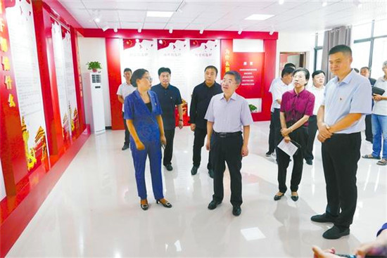 皇甫立新首先來到槐店回族鎮(zhèn)海樓社區(qū)。海樓社區(qū)位于縣城中心,是全縣政治經(jīng)濟(jì)文化中心。走進(jìn)社區(qū),路兩旁紅旗飄飄,新時代、新思想、新目標(biāo)、新征程等具有時代特色的宣傳畫繪制在兩邊的墻壁上。社區(qū)廣場上“百村綜合治理辦公室”的牌子特別醒目,社區(qū)辦公室有關(guān)百村綜合治理的規(guī)章制度一應(yīng)俱全?;矢α⑿聦巧鐓^(qū)的工作給予充分肯定,并就工作中存在的問題給予指正,要求社區(qū)黨支部突出建好、管好、用好村委黨員會議室,突出主題,唱響主旋律。