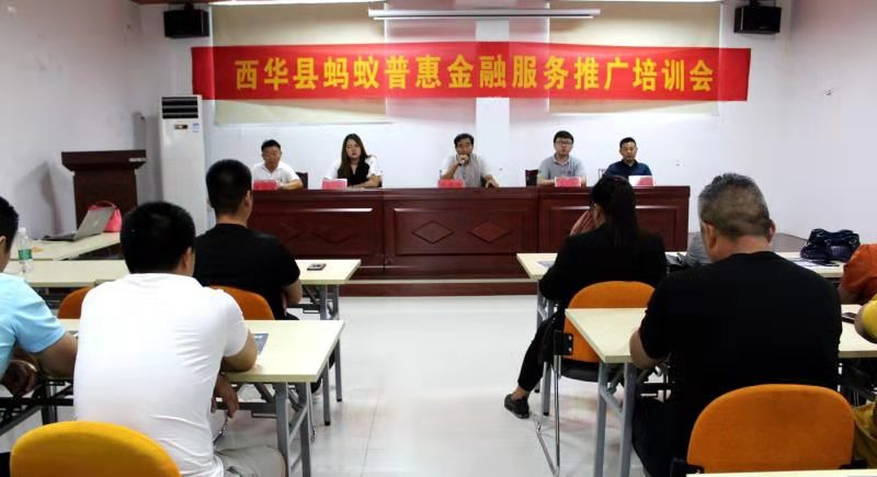 當(dāng)日,西華縣螞蟻普惠金融服務(wù)推廣培訓(xùn)會在縣電商園二樓電教室召開,縣政府品牌辦工作人員、北京軟通智慧有限公司有關(guān)負(fù)責(zé)人、益農(nóng)信息社信息員、種養(yǎng)加基地企業(yè)負(fù)責(zé)人共計(jì)100余人參加培訓(xùn)會。