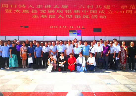秋陽高照,丹桂飄香。8月31日上午,周口市詩詞學(xué)會(huì)骨干詩人走進(jìn)太康縣,參加“六村共建”示范村暨太康縣文聯(lián)慶祝新中國(guó)成立70周年走基層大型采風(fēng)活動(dòng)。周口市詩詞學(xué)會(huì)會(huì)長(zhǎng)段文、周口市各縣市骨干詩人及太康縣宣傳文聯(lián)有關(guān)負(fù)責(zé)人參加了本次活動(dòng)。采風(fēng)活動(dòng)由周口市詩詞學(xué)會(huì)主辦,太康縣文聯(lián)和太康縣詩詞楹聯(lián)學(xué)會(huì)承辦。
