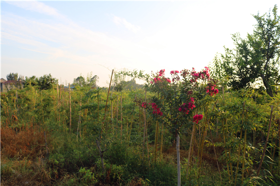 米杰是第一個(gè)嘗試吃螃蟹的田園綜合體追夢(mèng)人,這個(gè)在外打拼多年事業(yè)有成的豫東漢子,放棄了原本舒適的城市生活,于去年初回到老家大米行政村,通過流轉(zhuǎn)連片成方土地,栽植紫薇、紅梅、丁香、臘梅、石楠、海棠、櫻花、碧桃、無花果、蘋果、藍(lán)莓、石榴、冬棗等各類喬木果樹,并配套完成地下供排水管網(wǎng)和線纜埋設(shè)等現(xiàn)代化農(nóng)田設(shè)施,和鎮(zhèn)里已經(jīng)形成的萬畝中藥材基地連成一片,形成規(guī)模效應(yīng)。朝著他心目中的“一田花、一片林、一灣水、一首詩(shī)、一幅畫”——惠濟(jì)灣田園旅游新高地闊步前行。