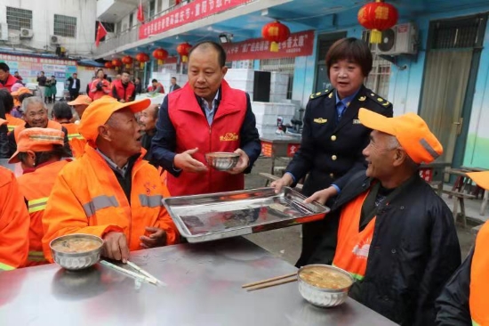 當(dāng)日凌晨5時(shí)許,太康縣愛(ài)心早餐點(diǎn)人頭攢動(dòng),熱鬧非凡,一輛裝滿新鮮蔬菜的大貨車停放在院中,20多名城管志愿者在太康縣城管局局長(zhǎng)張愛(ài)梅的帶領(lǐng)下正從車上往下卸蔬菜。聽(tīng)說(shuō)愛(ài)心企業(yè)要為環(huán)衛(wèi)工捐贈(zèng)蔬菜,太康縣委常委、統(tǒng)戰(zhàn)部長(zhǎng)張新棟也放棄節(jié)日休息,天不明趕到太康愛(ài)心早餐點(diǎn),加入到蔬菜裝卸行列?!肮?jié)日里,縣領(lǐng)導(dǎo)也不忘過(guò)來(lái)看望我們環(huán)衛(wèi)工,真讓人感動(dòng)啊?!笨粗鴱埿聴?、張愛(ài)梅等人忙前忙后卸蔬菜,臉上浸滿了汗珠,環(huán)衛(wèi)工張大爺?shù)热藙?dòng)情地說(shuō),“社會(huì)上有這么多好人關(guān)心我們環(huán)衛(wèi)工,我們?cè)倏嘣倮垡仓盗?”