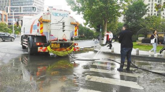 10月20日,中心城區(qū)慶豐路與周口大道交叉口處,市城鄉(xiāng)一體化示范區(qū)工作人員正在清洗路面。近日,我市有關部門抽調人力清洗路面,美化環(huán)境,城市變美了,市容變靚了。