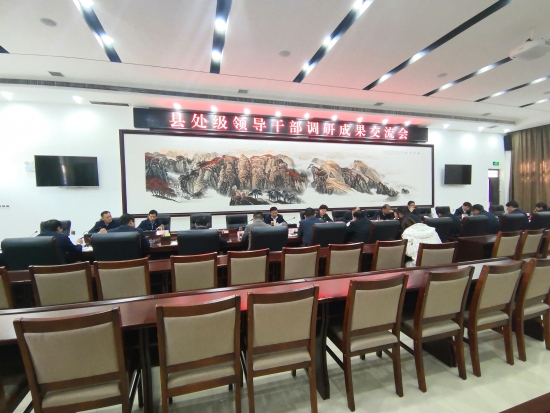 10月29日,扶溝縣召開處級領(lǐng)導(dǎo)干部調(diào)研成果交流會和縣委理論學(xué)習(xí)中心組對照黨章黨規(guī)找差距專題會。縣處級領(lǐng)導(dǎo)干部就調(diào)研發(fā)現(xiàn)的問題、提出的思路和解決的辦法進行總結(jié)交流,對照黨章黨規(guī)查找自身存在的突出問題,進行檢視整改,將主題教育轉(zhuǎn)化為解決問題的具體行動。縣委副書記、縣長張穎波主持會議。