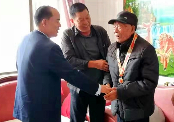 在鹿邑縣,也有一位隱居鄉(xiāng)村65載的老英雄——王榮,自1954年響應(yīng)國家號(hào)召復(fù)員回鄉(xiāng),他一直就居住玄武鎮(zhèn)王橋村,曾參加過抗日戰(zhàn)爭(zhēng)、解放戰(zhàn)爭(zhēng),給開國上將葉飛當(dāng)過通訊班班長(zhǎng)的他如今已是94歲高齡,但身體依然硬朗。65年間,他從未向組織伸過手,他說:“是黨給了我生命,讓我走上了革命道路。戰(zhàn)爭(zhēng)年代,黨領(lǐng)導(dǎo)咱們打天下不容易。現(xiàn)在天下太平了,但不能忘記黨的恩情,要永遠(yuǎn)聽黨的話、跟著黨走?!?/p>