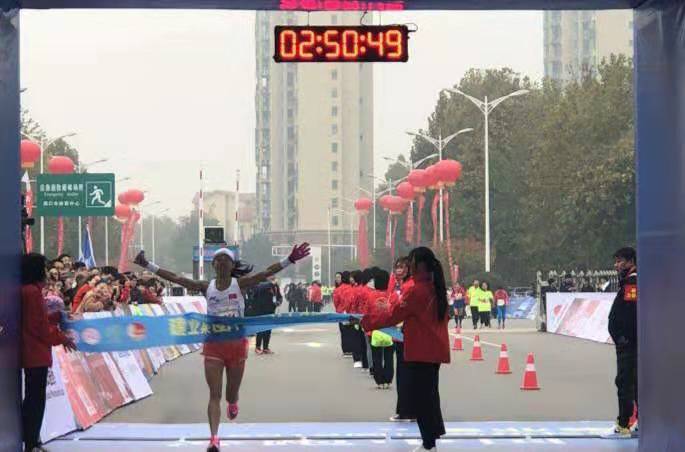 令人值得祝賀的是,在周口馬拉松全程女子組中,來(lái)自山東的選手陳麗,以2小時(shí)50分49秒奪得女子組的冠軍。