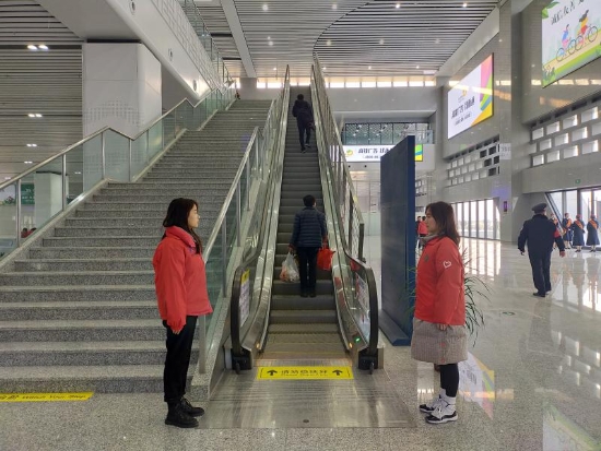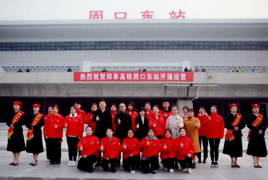 為慶祝鄭阜高鐵首發(fā),同時給乘客營造一個溫馨舒適的乘車環(huán)境,提升城市溫度,12月1日,在團市委的組織下,來自周口職業(yè)技術學院的80名青年志愿者聚集在周口東站,開展志愿服務活動。記者在現(xiàn)場看到,志愿者身穿統(tǒng)一服裝,分布在站前廣場、售票廳、進站口、候車廳的各個角落,他們有的幫助乘客取票;有的引導乘客,幫助乘客進站;有的則幫助車站工作人員分散客流量等。志愿者們積極熱情的工作態(tài)度,得到了廣大乘客的好評。