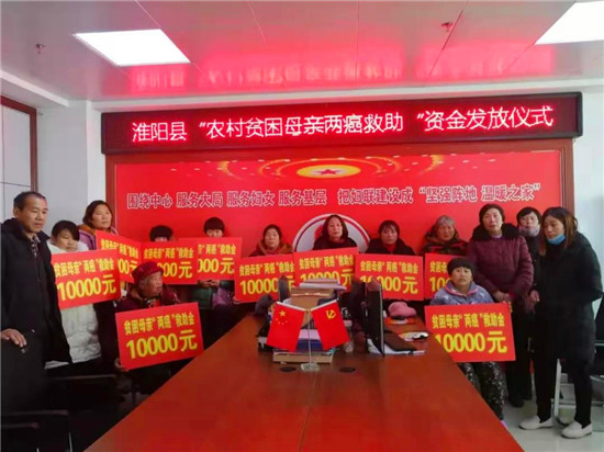 12月19日上午,淮陽縣婦聯(lián)舉行第二批農(nóng)村貧困婦女“兩癌”救助金集中發(fā)放儀式,為14名患“兩癌”貧困受助婦女發(fā)放每人1萬元,共計14萬元的專項救助項目資金。