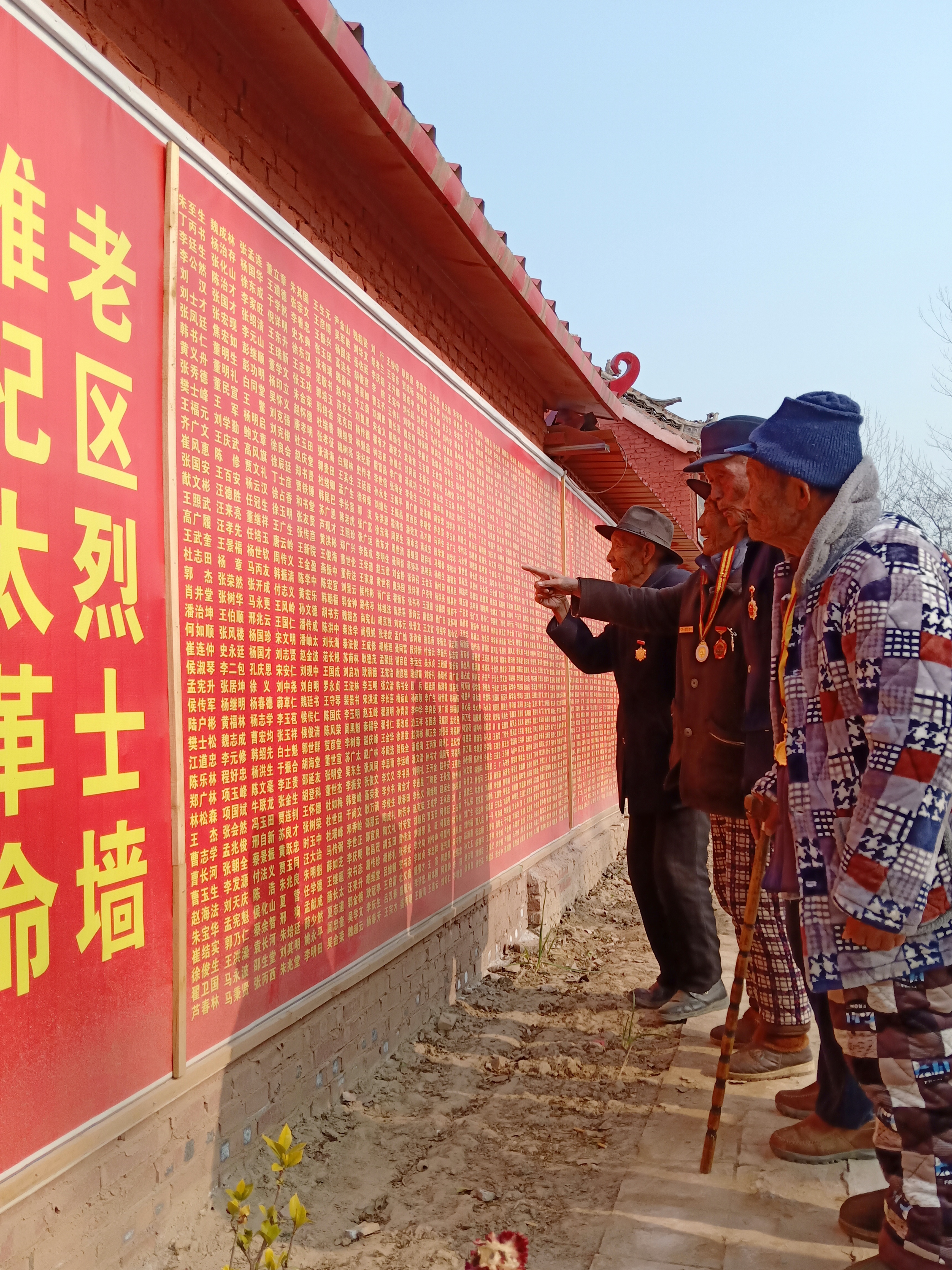 12月13日,在豫東平原一個名不見經傳的小村莊——太康縣楊廟鄉(xiāng)三官廟村,該村及附近村莊的郭澤林(91歲)、孫增禮(93歲)、王福慶(94歲)、張新學(92歲)等抗戰(zhàn)老兵,邁著蹣跚的步子來到三官廟革命紀念館,在一面鐫刻著3800多名革命先烈名字的烈士墻上默默地尋找著自己戰(zhàn)友的名字,久久不愿離去……